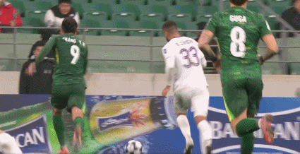 42’ Zhang Yuning bị đối thủ rê bóng dưới háng làm nhục, Fabio lao vào đẩy đối thủ cho đồng đội