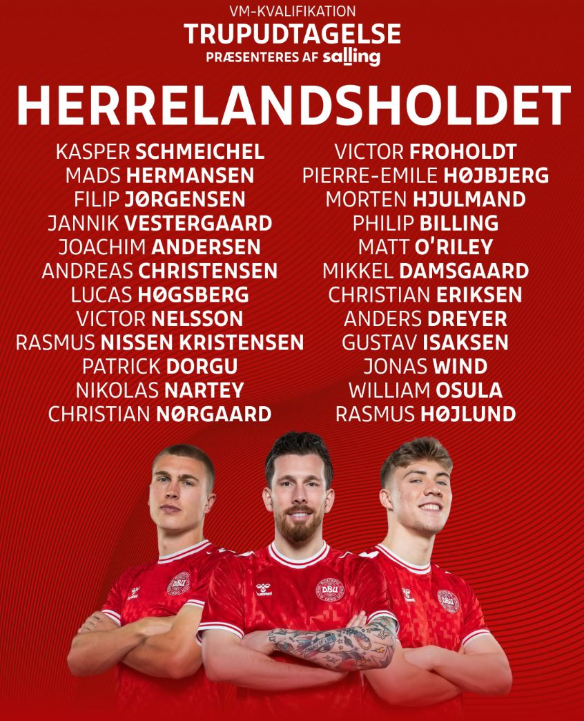 Đan Mạch công bố đội hình mới: Hoylen dẫn dắt tiền đạo, chọn Eriksen
