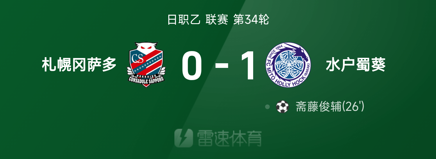 Tường thuật trận đấu Japan League B: Shunsuke Saito thắng, Consadole Sapporo 0-1 Mito Hollyhock