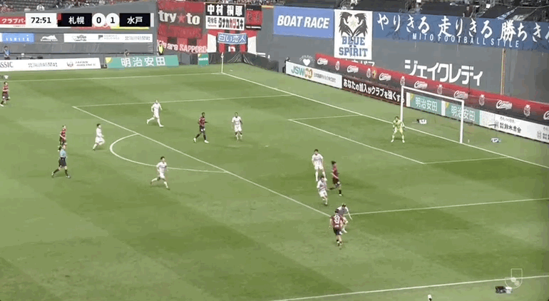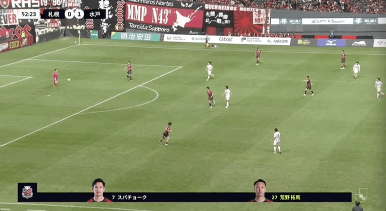 53' Sapporo theo bóng bằng một động tác nhưng vẫn kiên nhẫn chuyền bóng xuống sân