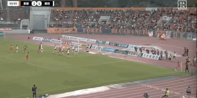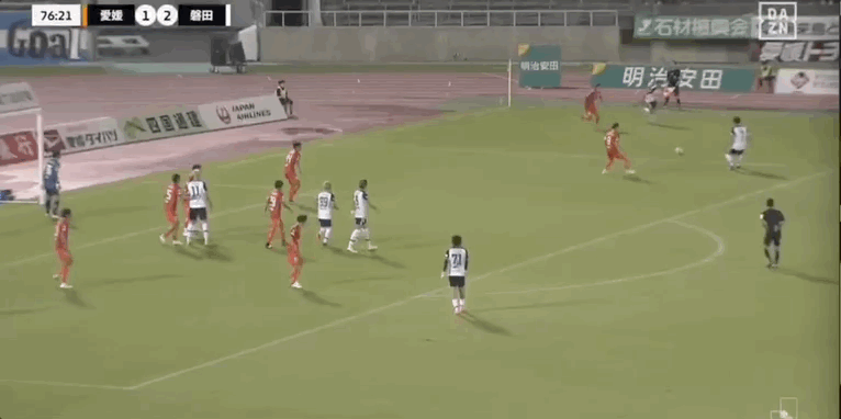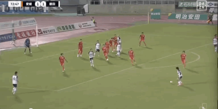 36' Cấp độ nào? Cầu thủ Ehime cản bóng trong khu vực ba giây và trực tiếp cản bóng ra ngoài biên