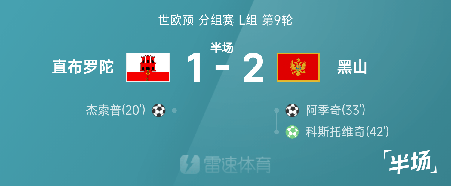 Hiệp một World Cup: Jessop ghi bàn, Adzic ghi bàn, Montenegro 2-1 Gibraltar