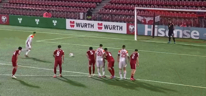 45+4’ Adzic thực hiện quả đá phạt trực tiếp và sút trúng khung thành bằng chân phải. Bóng đi vọt xà ngang và bay ra ngoài vạch cuối sân