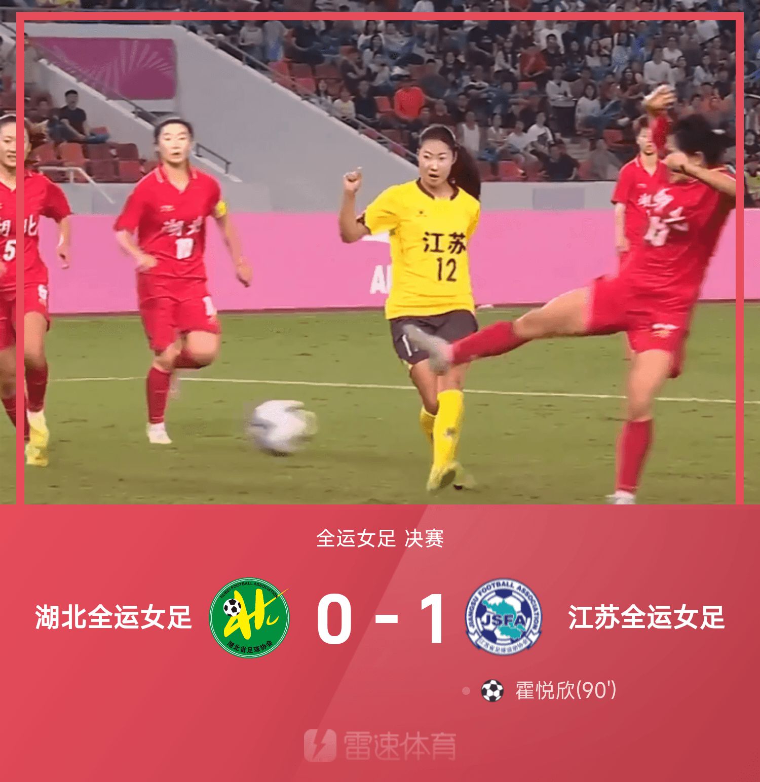 Tường thuật trận đấu bóng đá nữ Đại hội thể thao toàn quốc: Cú sút cuối cùng của Huo Yuexin, đội tuyển bóng đá nữ Giang Tô đánh bại đội tuyển bóng đá nữ Hồ Bắc với tỷ số 1-0 để giành huy chương vàng