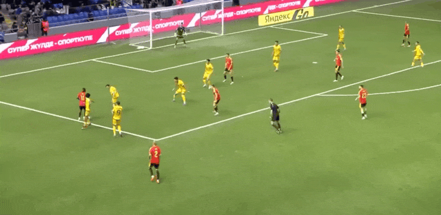 45+2' Castagne chuyền bóng về phía trước từ cánh phải và Anabekov dũng cảm cản phá