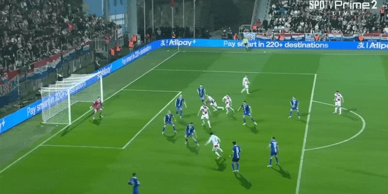 52' Stanisic chuyền bóng vào vòng cấm trong khu vực, và cú đánh đầu của Kramaric nảy hơi chệch ra ngoài