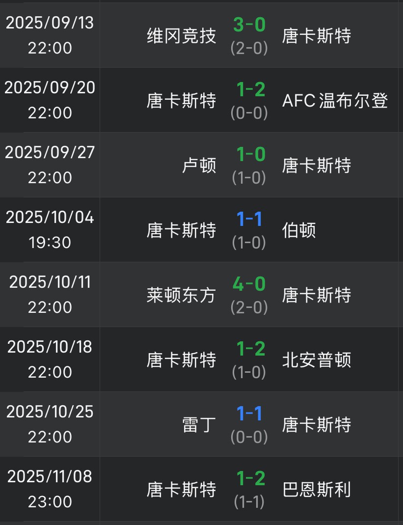 Kết quả 8 vòng đấu gần nhất của Doncaster