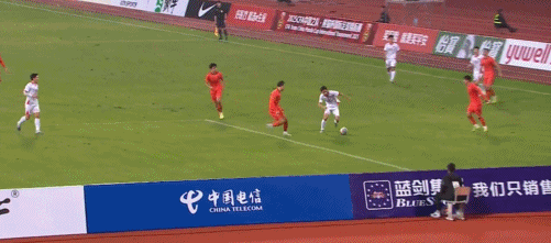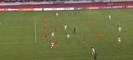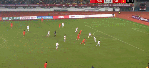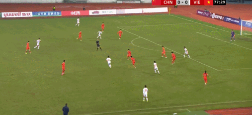 33' Đội tuyển Trung Quốc thực hiện đường chuyền uy hiếp từ cánh trái vào vòng cấm, cầu thủ chạy biên trước khung thành chậm hơn một bước