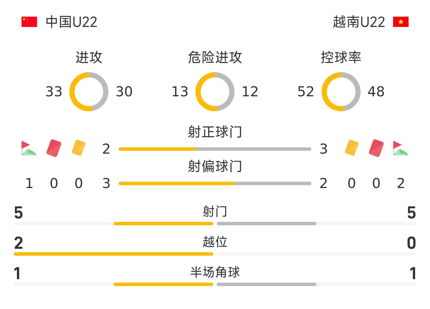 49' Đội tuyển Việt Nam tạo ra mối đe dọa gây khó chịu. Cú sút của Ruan Guoyue bị hậu vệ cản phá và bị thủ môn bắt được