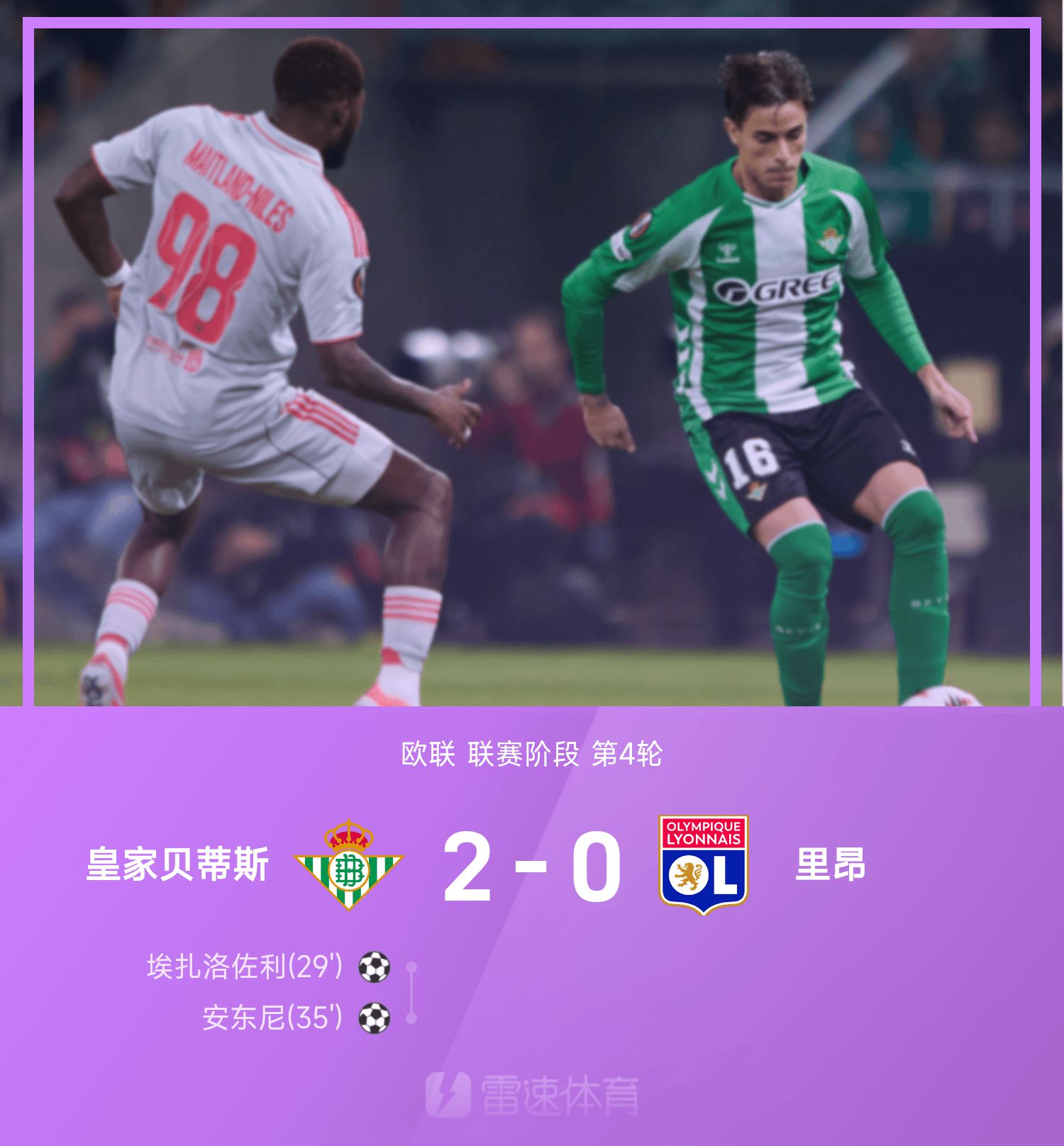 6686 Bản tin thể thao ngày 7/11 Ở vòng 4 Europa League 25/26, Real Betis đối đầu Lyon. Phút 29 của hiệp một, Bakambu kiến tạo cho Ezzarozzoli ghi bàn, để Real Betis vượt lên dẫn trước. Phút 35, Rocca thực hiện quả đá phạt và chuyền bóng. Anthony thực hiện cú sút bình tĩnh bằng một cú sút duy nhất để nâng tỷ số lên 2-0. Không đội nào ghi được bàn thắng nào trong hiệp hai. Chung cuộc, Real Betis đã đánh bại Lyon với tỷ số 2-0 trên sân nhà.