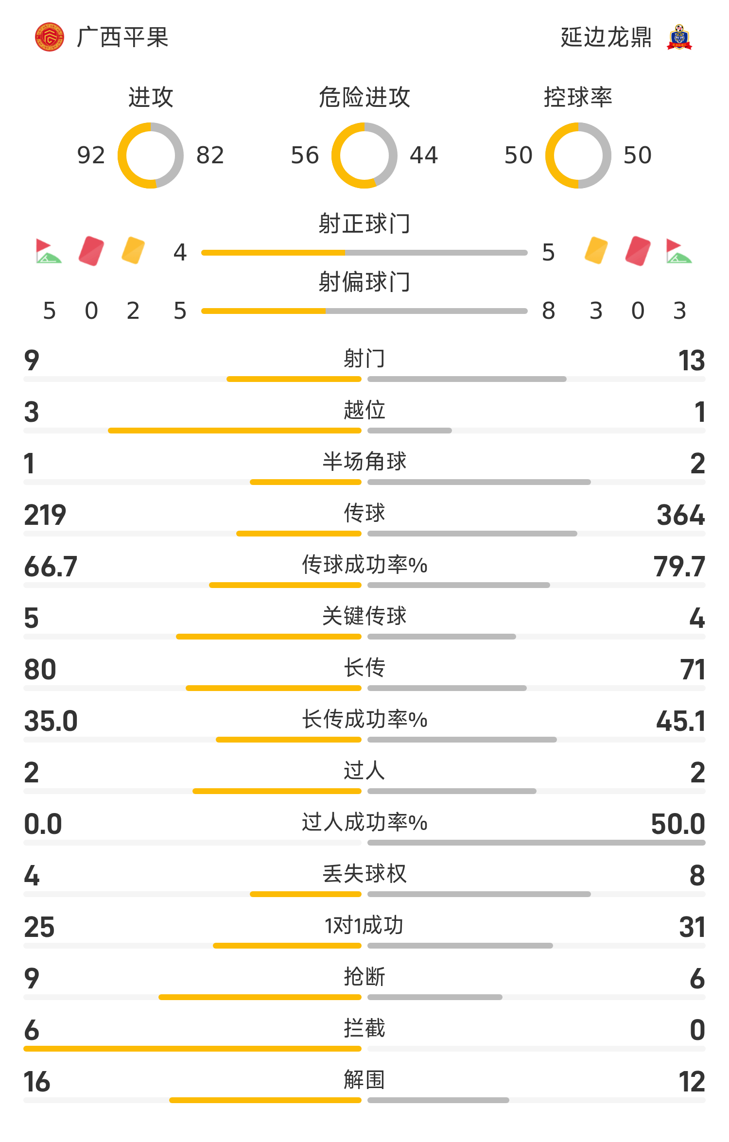Đội hình xuất phát của Quảng Tây Pingguo: 13-Wang Jinshuai, 35-Zhu Yue, 34-Xiang Rongjun, 5-Yao Diran, 4-Feng Yifan, 11-Liu Hao (70'36-Yang Minjie), 19-Chen Quanjiang (69'44-Fan Chao), 29-Fu Shang (86'38-Zhang Wei ), 32-You Wenjie (86'33-Ding Quanchen), 43-Michael, 39-Lu Chenghe (54'17-Yang Jingfan)
