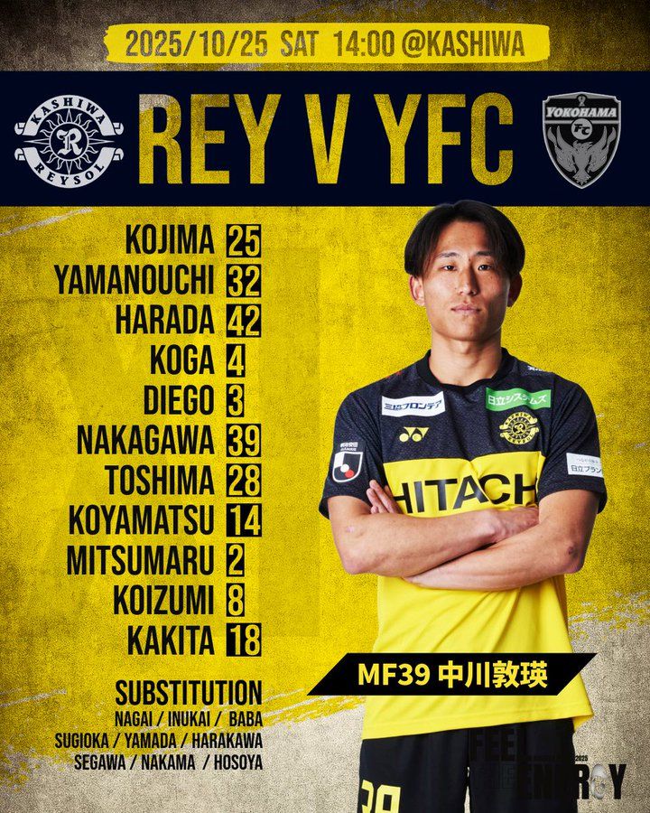Đội hình xuất phát của Yokohama FC: 24-Swarwick, 22-Katsuya Iwatake, 16-Mato Ito, 5-Koto Fukumori, 8-Eternal Yamane, 4-Yuri, 76-Kouta Yamada, 70-Hibiki Hosoi, 10-Paul, 91-Lukian, 9-Solomon