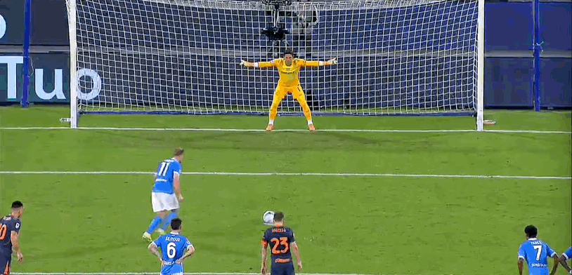 15’ Lautaro có một cơ hội tuyệt vời trong khu vực ba giây và cú sút của anh ấy đã bị thủ môn Naples cản phá