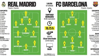 6686 Thể thao ngày 26 tháng 10 Vòng 10 La Liga sẽ mở ra trận El Clasico rất được mong đợi. Real Madrid sẽ gặp Barcelona trên sân nhà. Phương tiện truyền thông Tây Ban Nha "Daily Sports" đã dự đoán đội hình xuất phát của cả hai bên trong trận đấu này.