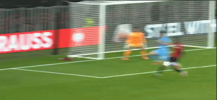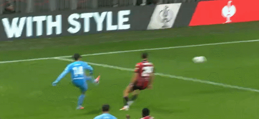 88’ Sanson đưa bóng ra ngoài vòng ba giây, vượt qua hậu vệ rồi sút từ bên ngoài. Bóng đi vọt xà ngang