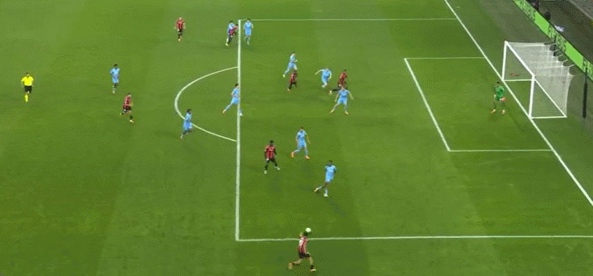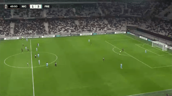 63' Nice bao vây đối thủ, Govia lốp bóng vọt xà ngang, và Samed tiếp theo bằng cú sút cao hơn xà ngang một chút