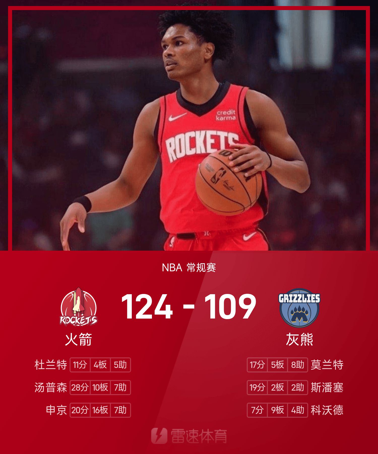 Báo cáo trận đấu NBA: Amen có 28 điểm, 10 rebound và 7 kiến tạo, Rockets đánh bại Grizzlies với tỷ số 124-109