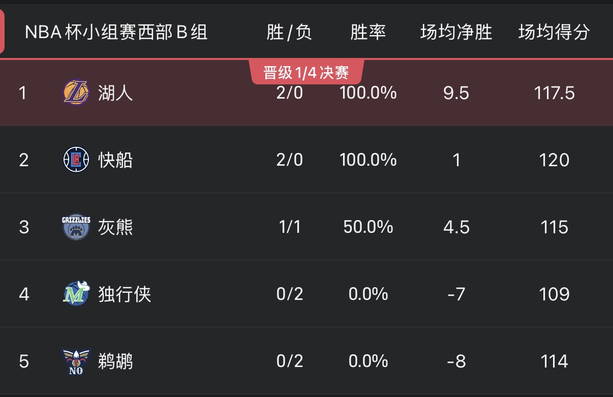 Xếp hạng thời gian thực của Cúp NBA: Nhiều đội đạt được 2 trận thắng và 0 trận thua, 5 đội ở bảng C Western Conference đều có 1 trận thắng và 1 trận thua.