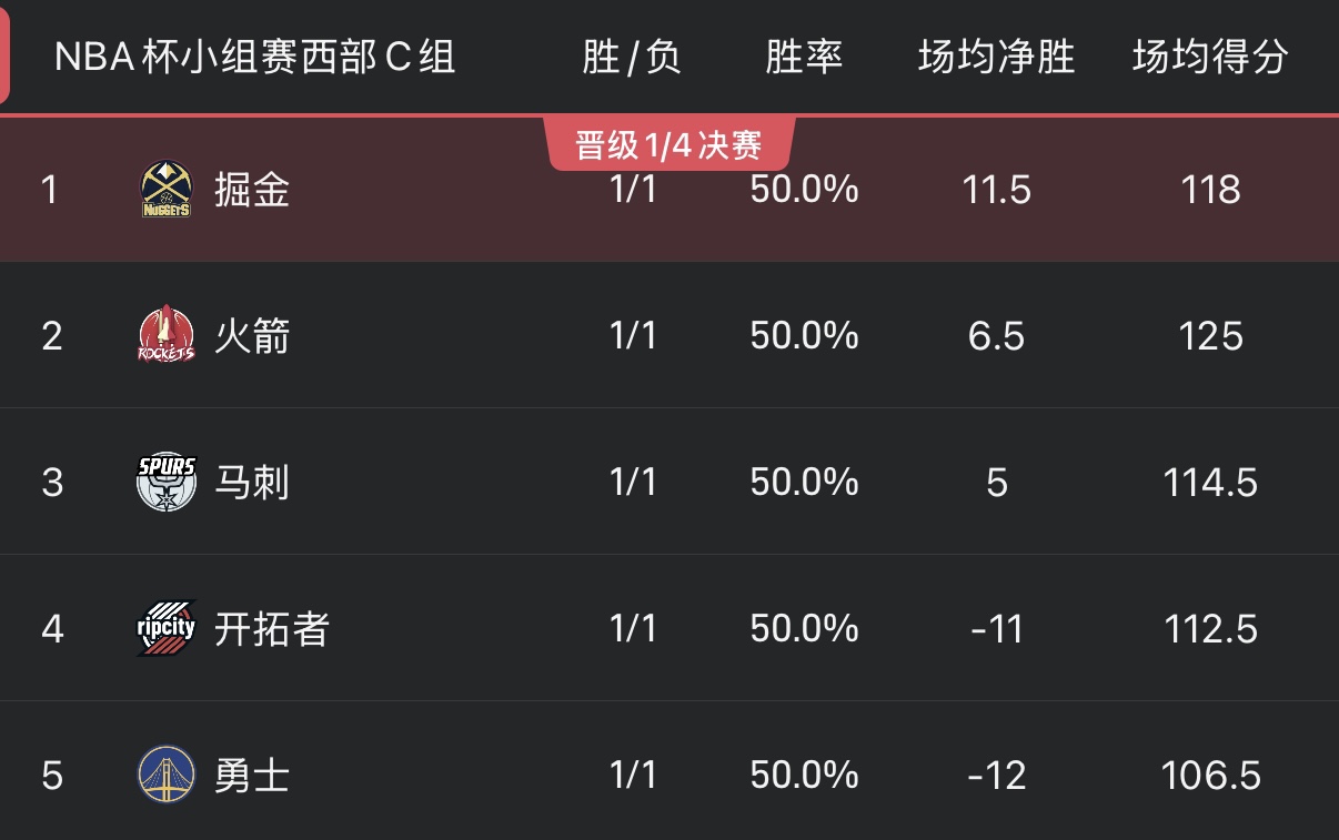 Nhóm C của Hội nghị phương Tây đang hỗn loạn. Hiện tại, cả 5 đội đều đạt được thành tích 1 thắng và 1 thua. 5 đội đã tạo thành một chuỗi lớn. Cuộc cạnh tranh tiếp theo sẽ có tác động rất lớn đến 5 đội này.