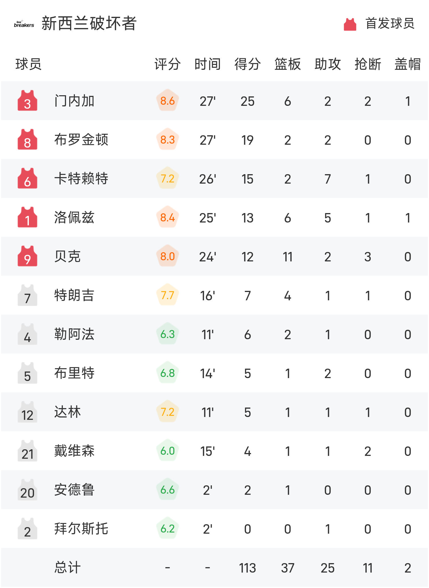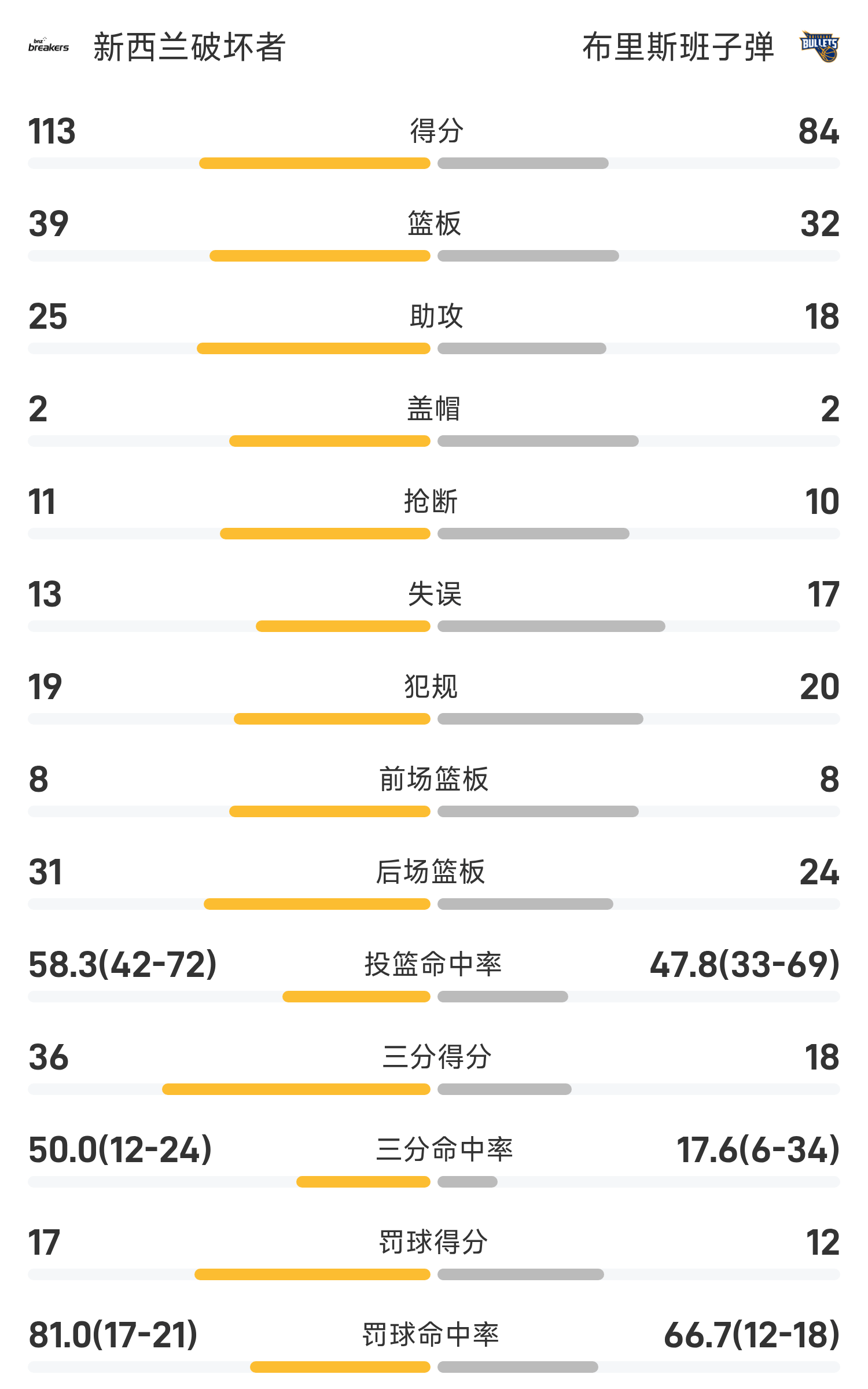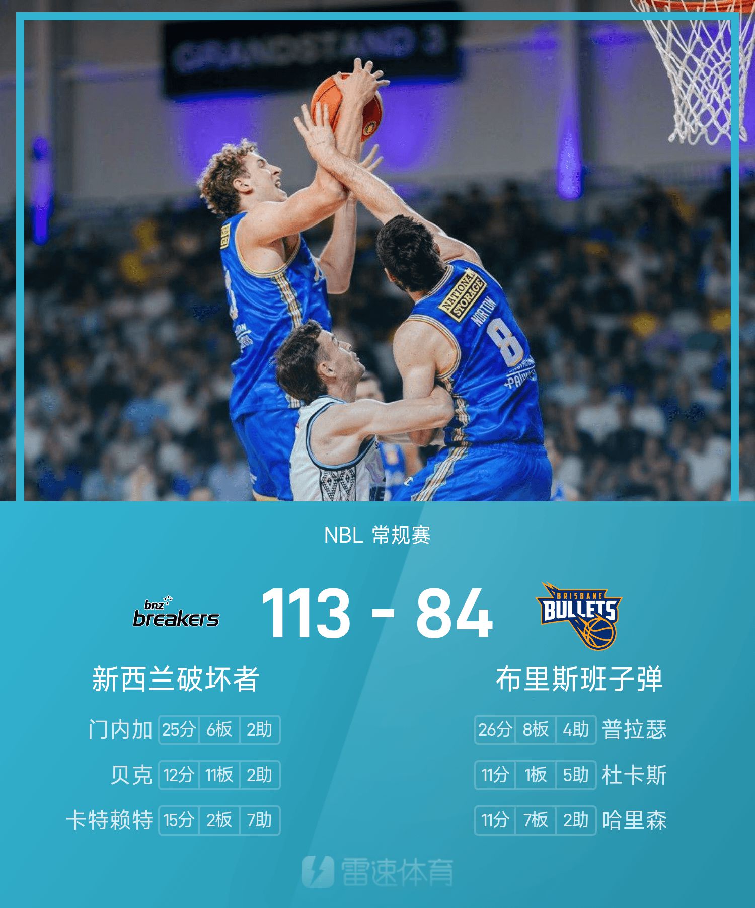 Cuối trận, Brisbane Bullets thua New Zealand Destroyers với tỷ số 84-113.