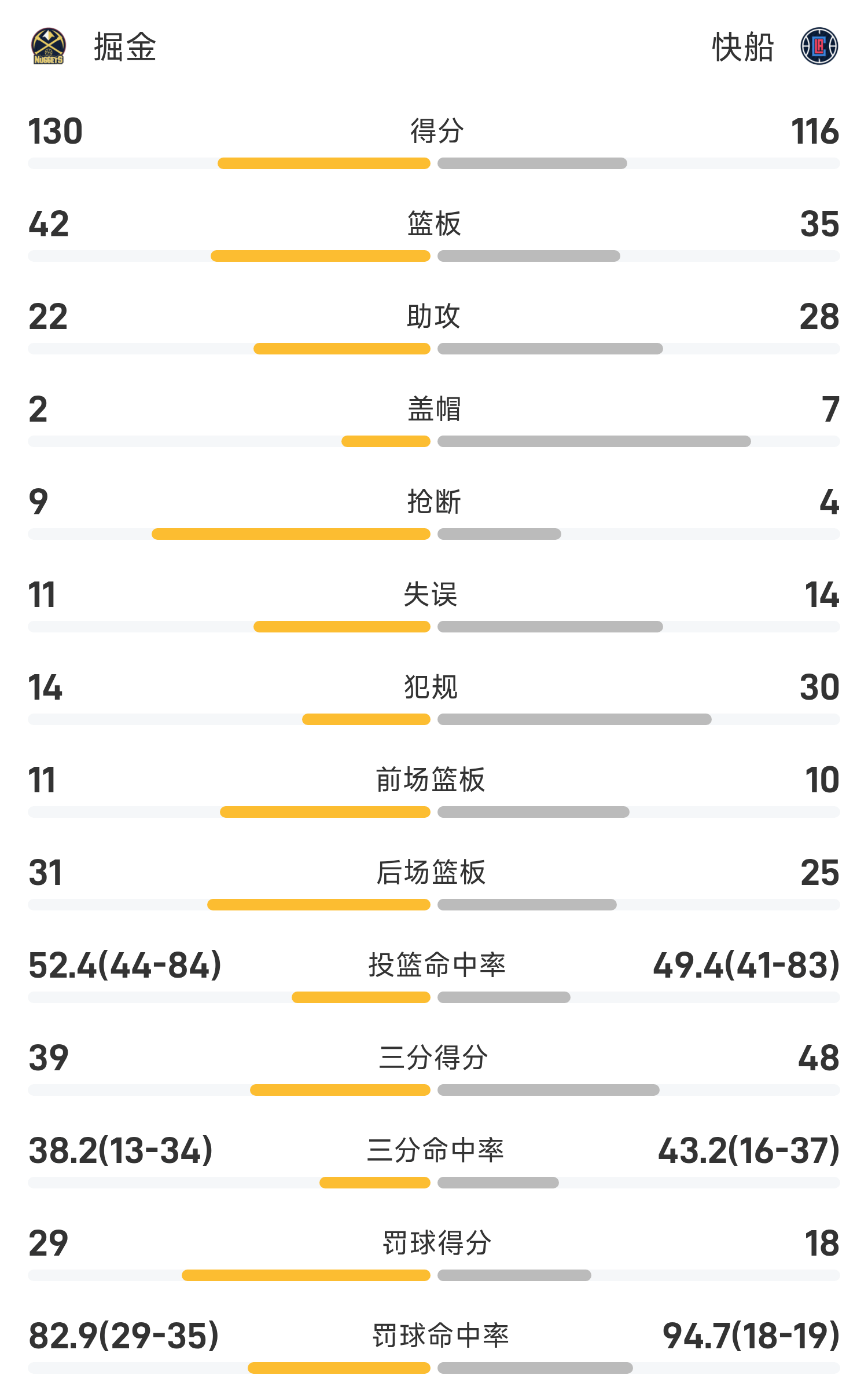 Cuối trận, Clippers thua Nuggets với tỷ số 116-130.