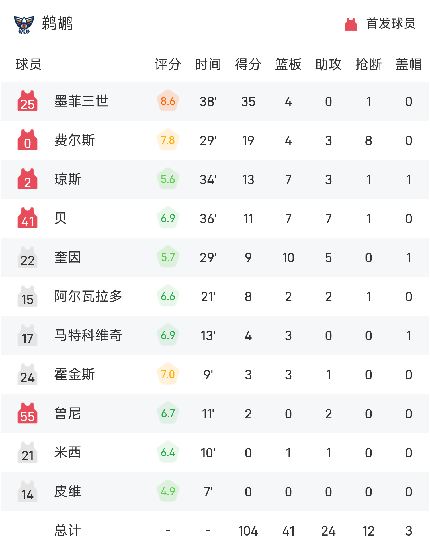 Cuối trận, Pelicans thua Lakers với tỷ số 104-118.