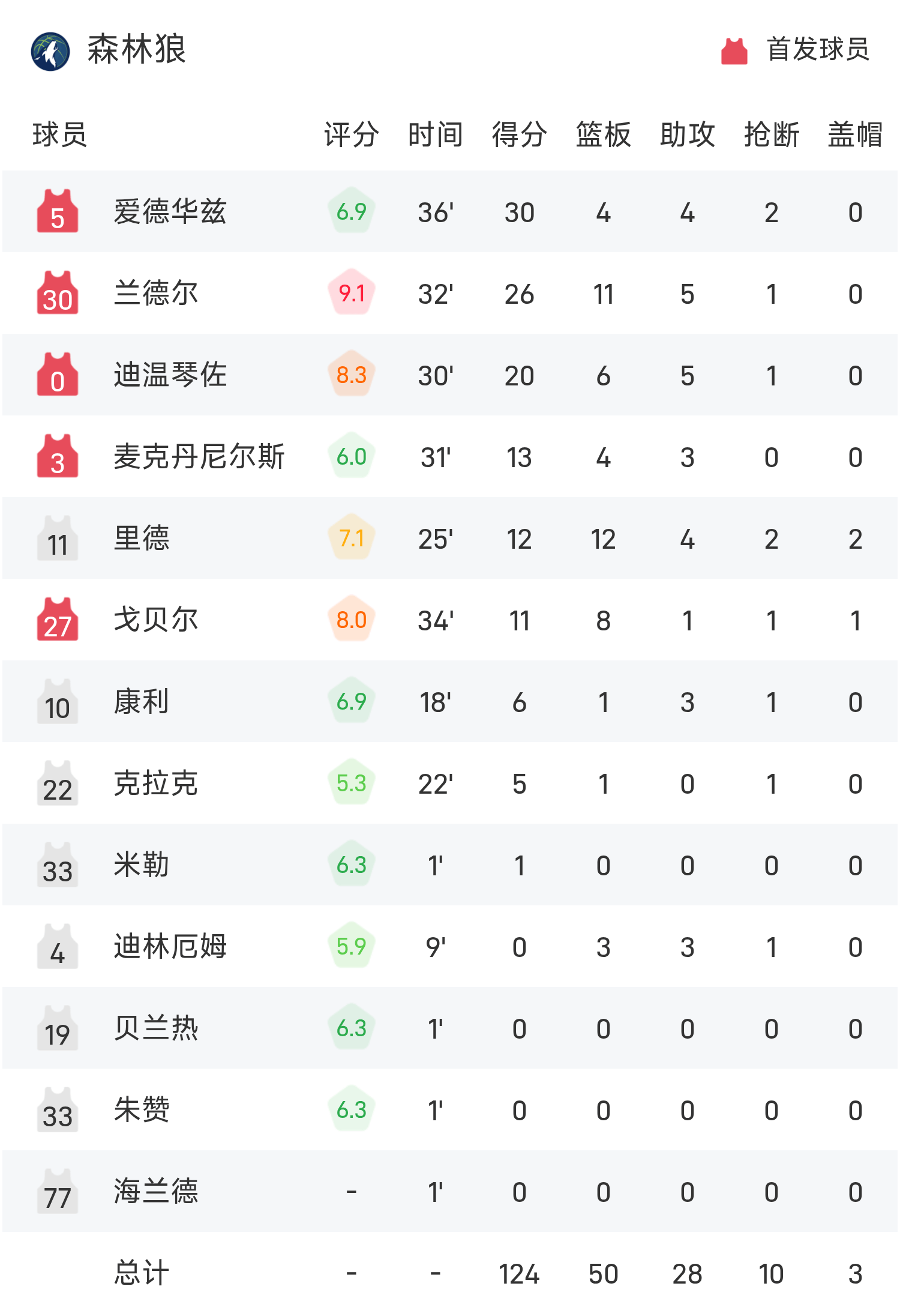 Edwards ghi 30 điểm, 4 rebound và 4 kiến tạo để dẫn dắt đội đến chiến thắng. Sabonis ghi được 34 điểm cao nhất trận, 11 rebound và 3 kiến tạo.