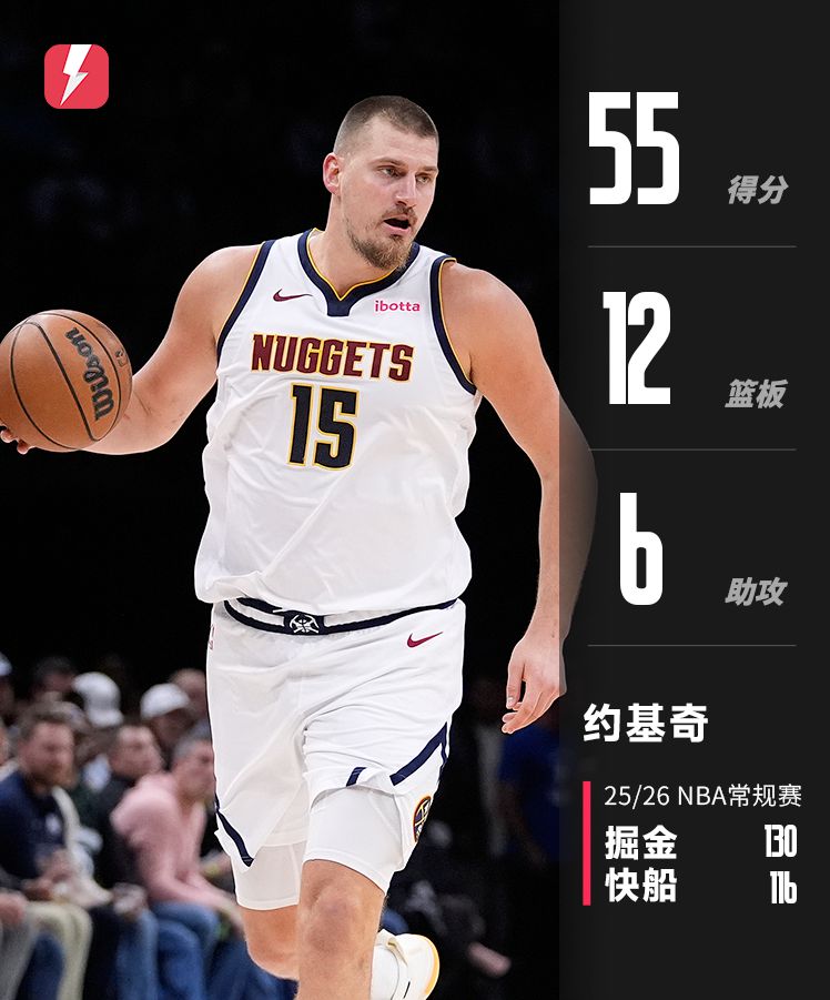 Jokic đã ghi được 55 điểm, 12 rebound và 6 kiến tạo khi bắn 18 ăn 23, đánh dấu số điểm cao nhất trong số các cầu thủ trong một trận đấu mùa này.