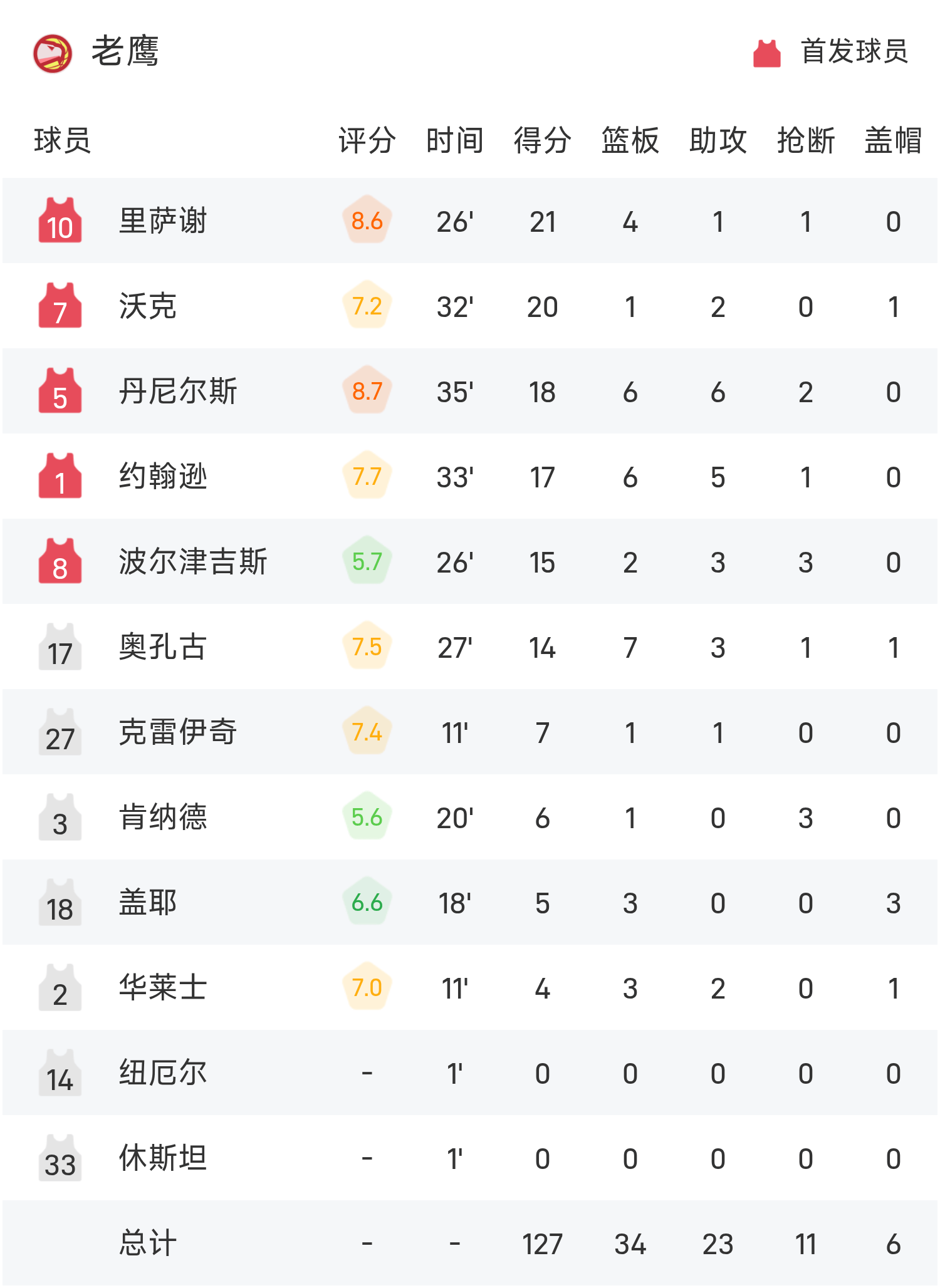 6686 Thể thao Tin tức ngày 5 tháng 11 Trong mùa giải NBA thường lệ 25/26, Hawks đã thi đấu với Magic. Kết thúc ván đấu, Đại bàng đã đánh bại Magic với tỷ số 127-112. Risashe ghi được 21 điểm, 4 rebound và 1 kiến tạo để dẫn dắt đội giành chiến thắng, còn Banqueiro ghi được 22 điểm, 11 rebound và 8 kiến tạo cao nhất trận.