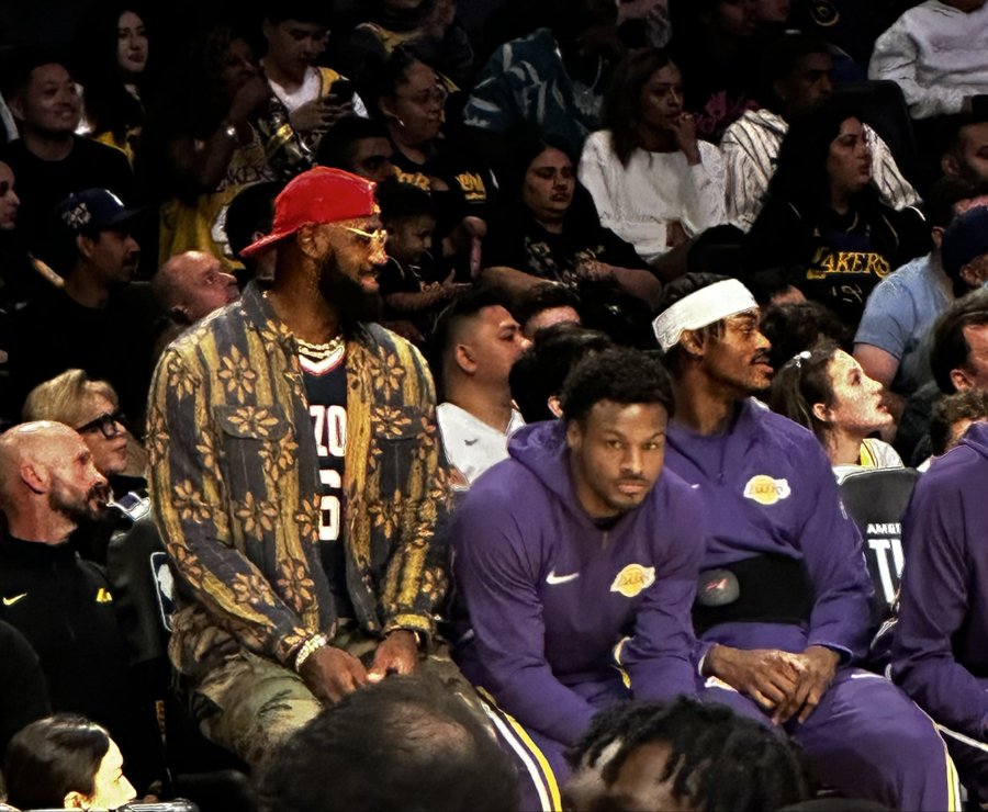 Các phóng viên của Lakers đã chia sẻ những bức ảnh về hiện trường. LeBron xuất hiện bên lề trong bộ đồng phục của con trai út Bryce của Đại học bang Arizona để xem trận đấu, với con trai cả Bronny ngồi bên cạnh.