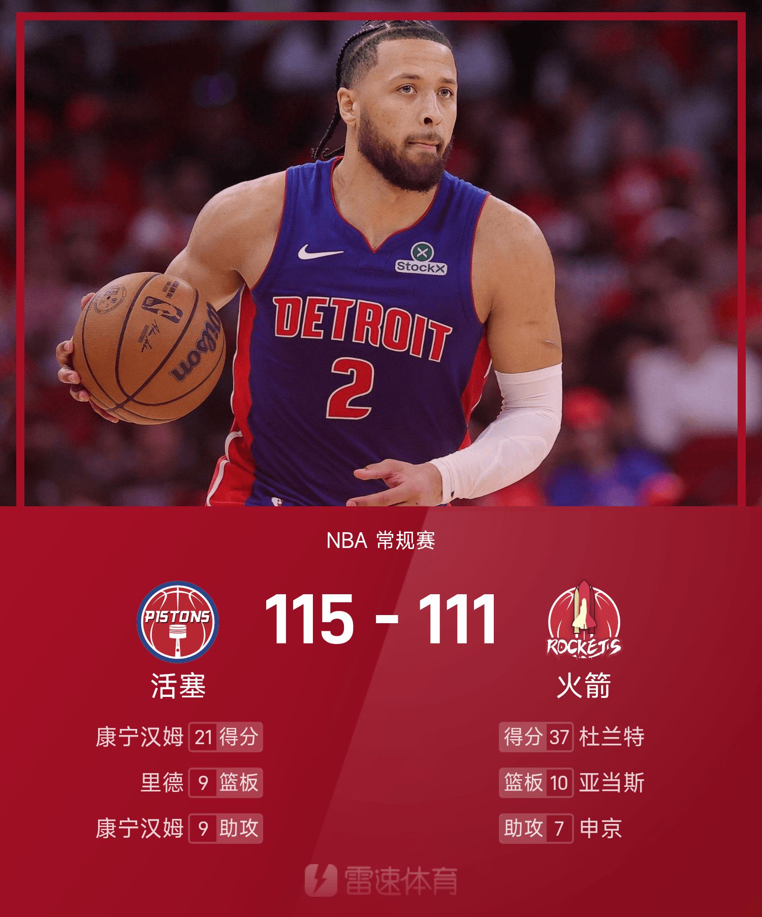 Báo cáo trận đấu NBA: Cunningham 21 điểm, 7 rebound và 9 kiến tạo, Pistons 115-111 Rockets