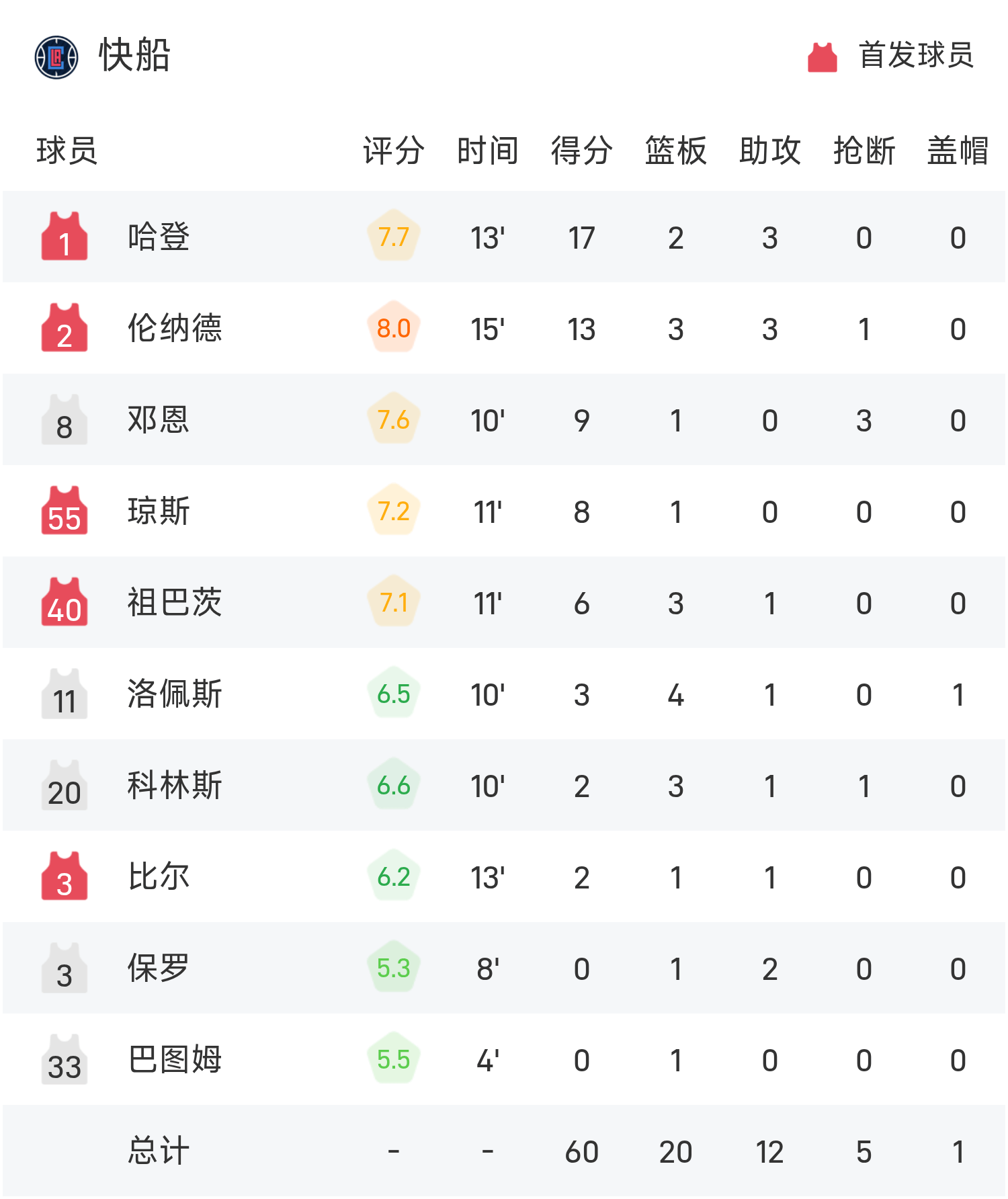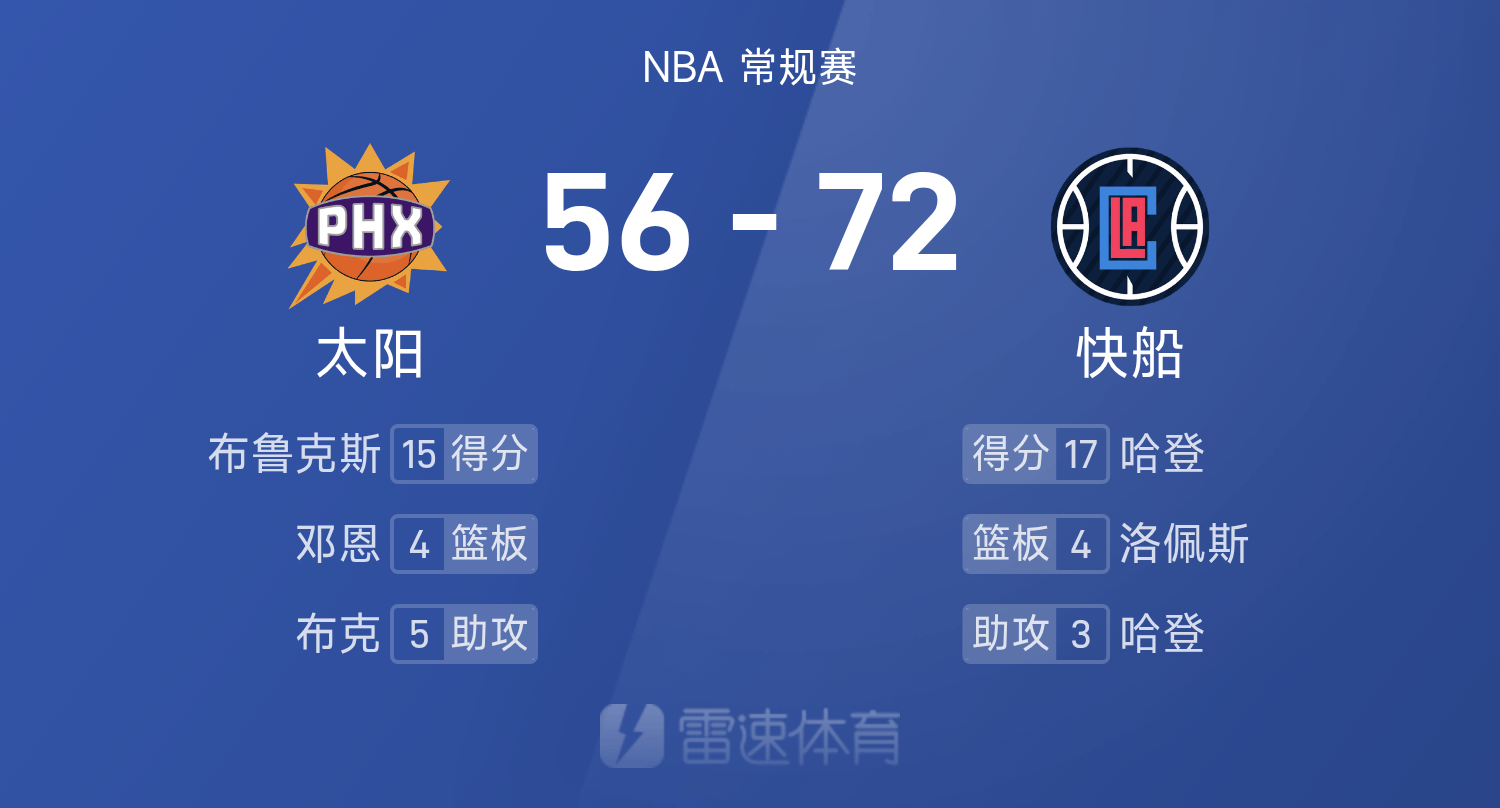 Harden thực hiện 5 trong số 6 quả ba điểm và ghi hiệu quả 26 điểm, 3 rebound và 4 kiến tạo. Booker chỉ ghi được 8 điểm. Clippers 72-56 Suns trong giờ nghỉ giải lao.