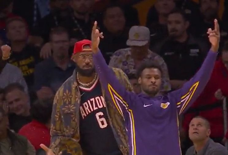 Khi Smart đánh một quả ba điểm để kết thúc trận đấu, James và Bronny đã ăn mừng bên lề.
