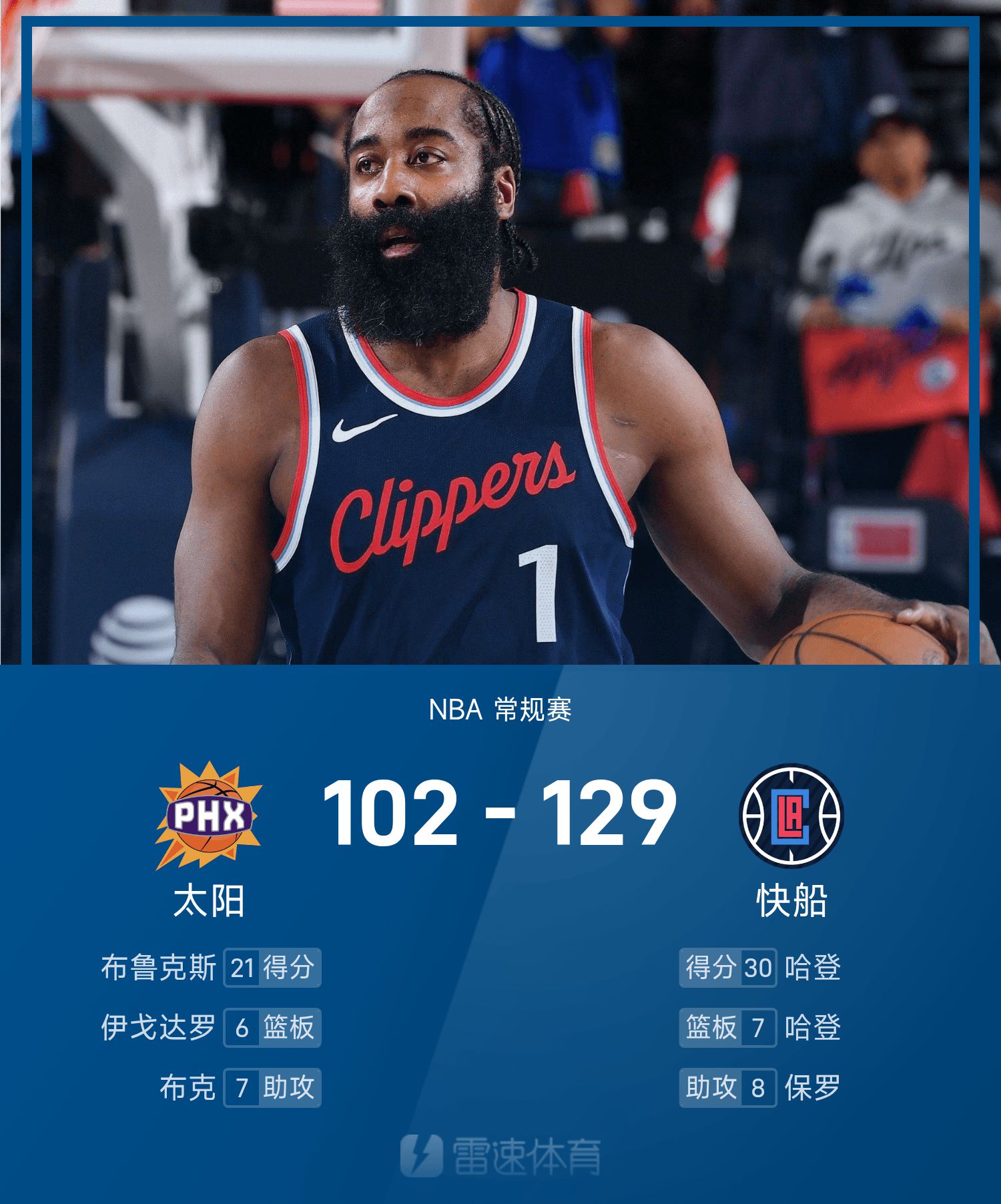 Báo cáo NBA: Harden có 30 điểm, 7 rebound và 7 kiến tạo, Clippers đánh bại Suns 129-102