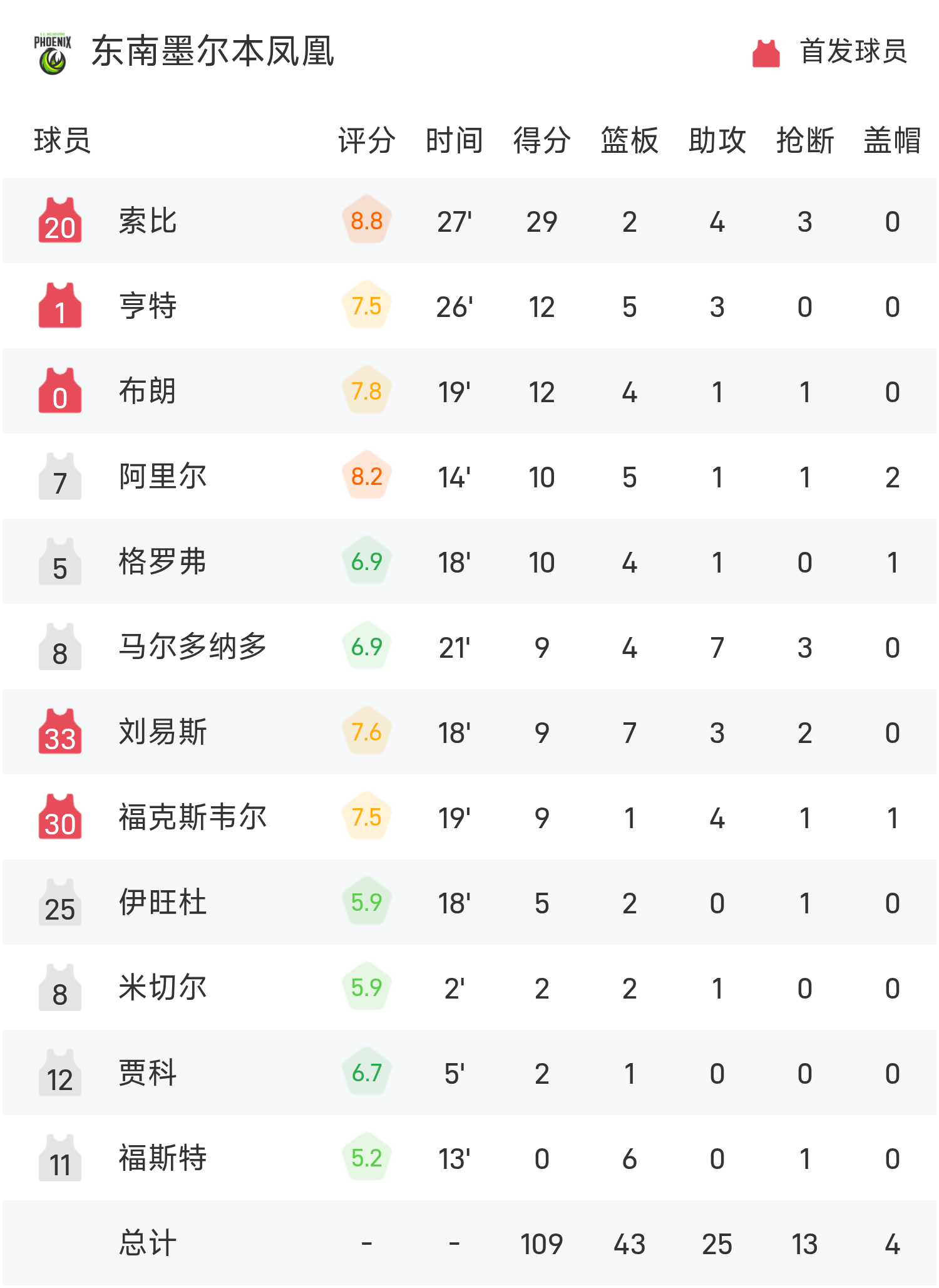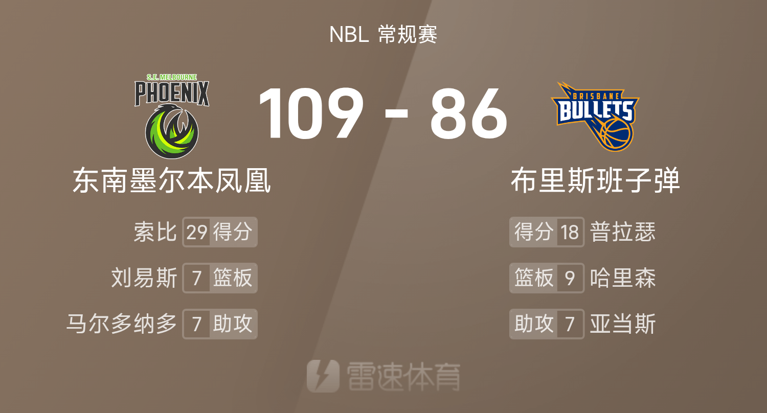 Báo cáo trận đấu NBL: Sobie ghi 29 điểm, Đông Nam Melbourne Phoenix đánh bại Brisbane Bullets 109-86