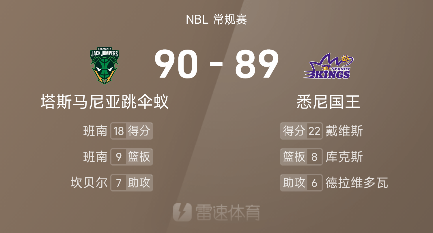 6686 Thể thao Tin tức ngày 26 tháng 10 Trong mùa giải NBL mùa giải 25/26, Sydney Kings phải đối mặt với Kiến nhảy dù Tasmania. Kết thúc trận đấu, Sydney Kings thua Kiến nhảy dù Tasmania với tỷ số 89-90. Bannan ghi được 18 điểm, 9 rebound và 2 kiến tạo để dẫn dắt đội giành chiến thắng, còn Davis ghi được 22 điểm, 6 rebound và 5 kiến tạo, cao nhất trận.