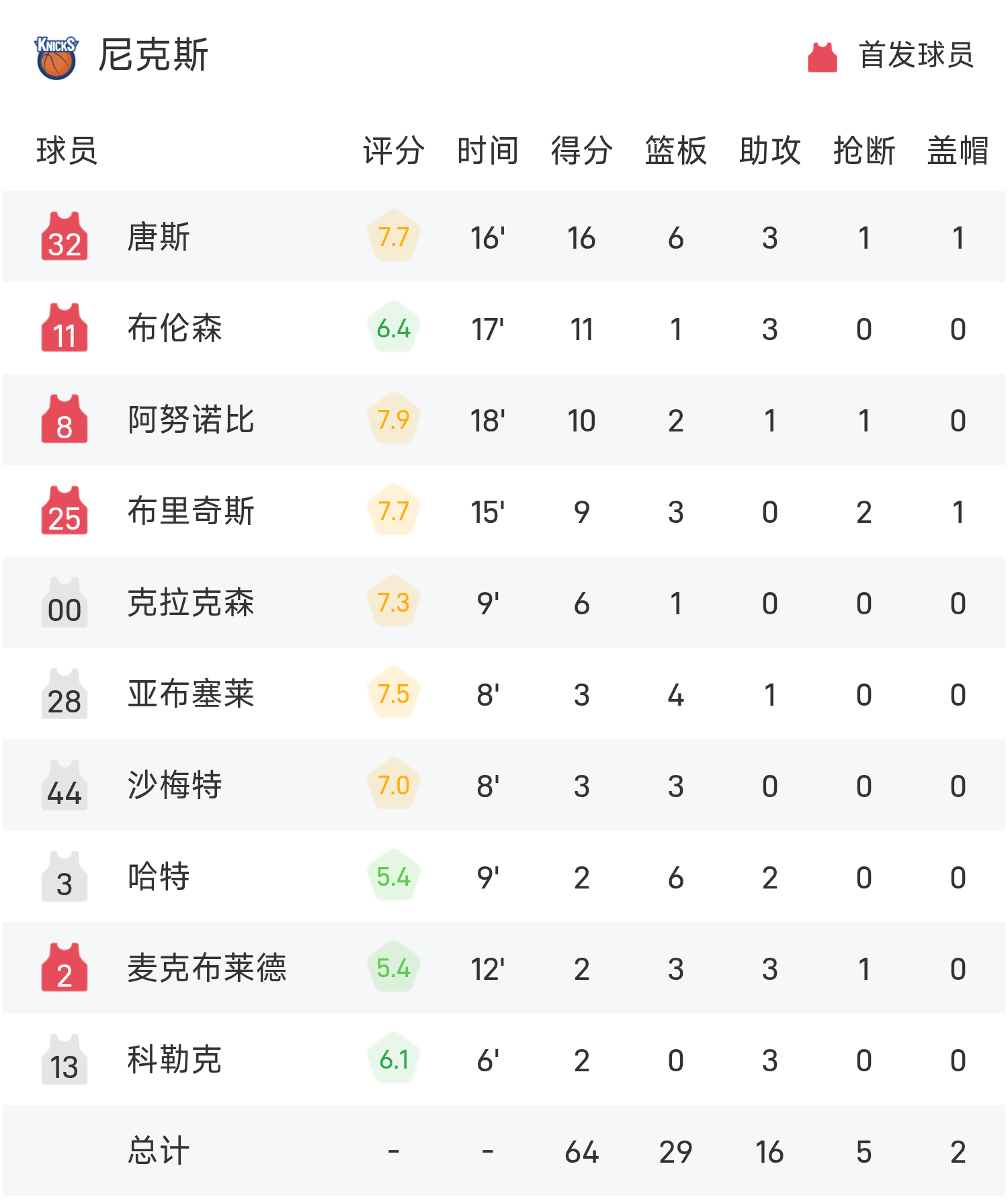 Trong hiệp hai của trận đấu, Greens ghi được 6 điểm sau 8 phút. Knicks đã nâng tỷ số lên 28-6 để hoàn tất việc đảo ngược. Towns ghi được thành tích cao nhất trong hiệp hai là 16 điểm, 6 rebound và 3 kiến tạo.