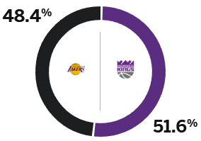 Trong số đó, tỷ lệ thắng của Lakers là 48,4% và tỷ lệ thắng của Kings là 51,6%.