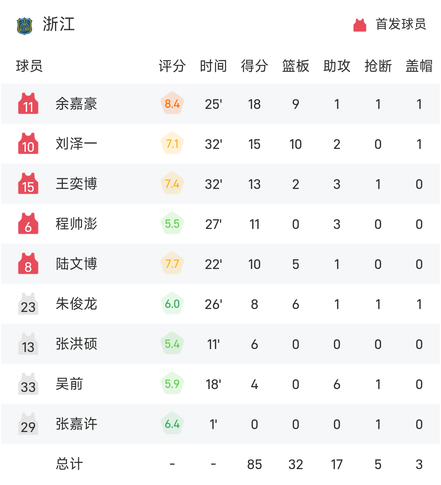 Báo cáo trận đấu bóng rổ nam Đại hội thể thao quốc gia: Yu Jiahao có 18 điểm và 9 rebound, Chiết Giang suýt đánh bại Sơn Đông 85-81