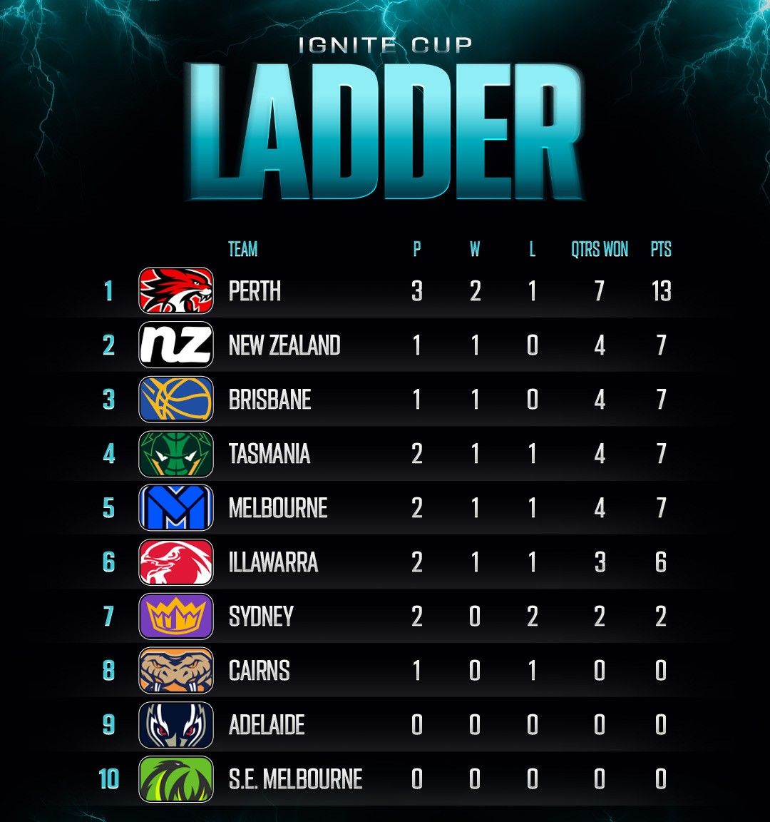 Bảng xếp hạng chức vô địch giữa mùa giải mới nhất của NBL: Mèo rừng, Kẻ hủy diệt và Đạn xếp hạng trong top ba